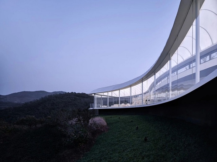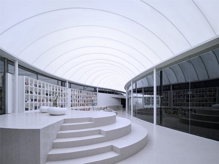 工程概況:泰安書吧膜結(jié)構(gòu)工程是一個(gè)集觀景、閱讀、休閑娛樂(lè)于一體的綜合項(xiàng)目,既有膜結(jié)構(gòu)建筑本身的現(xiàn)代化氣息,又有設(shè)計(jì)者及建造者高超技藝賦予的精致典雅,給人一種時(shí)尚別致卻又內(nèi)斂質(zhì)樸的觀感。本工程建筑屋面為流線形,建筑面積約600平米。外膜采用德國(guó)進(jìn)口白色環(huán)保膜材,內(nèi)膜采用PTFE內(nèi)膜,中間加保溫隔熱層,內(nèi)膜需要安裝燈光。屋面以下為全封閉空間,墻體采用落地玻璃形式,從各個(gè)角度都能獲得極佳的視野效果。