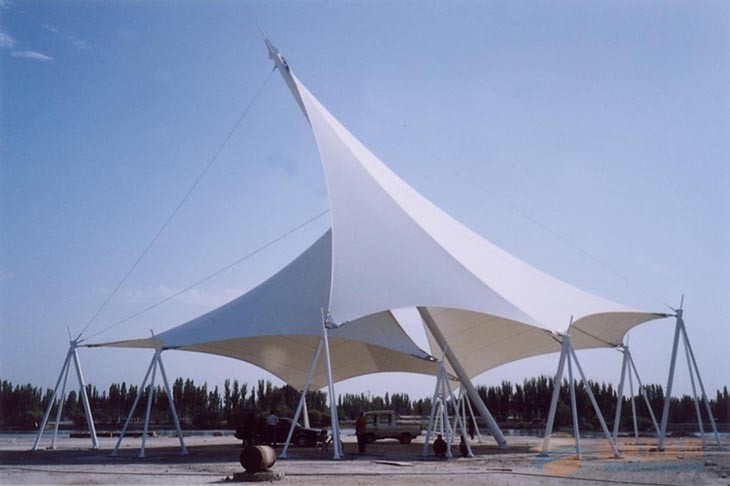 3、安全性:由于輕型結(jié)構(gòu)自重較輕,即使發(fā)生意外坍塌,其危險(xiǎn)性也較傳統(tǒng)建筑結(jié)構(gòu)小。膜結(jié)構(gòu)發(fā)生撕裂時(shí),若結(jié)構(gòu)布置能保證桅桿、梁等剛性支承構(gòu)件不發(fā)生坍塌,其危險(xiǎn)性會(huì)更小。