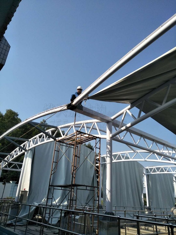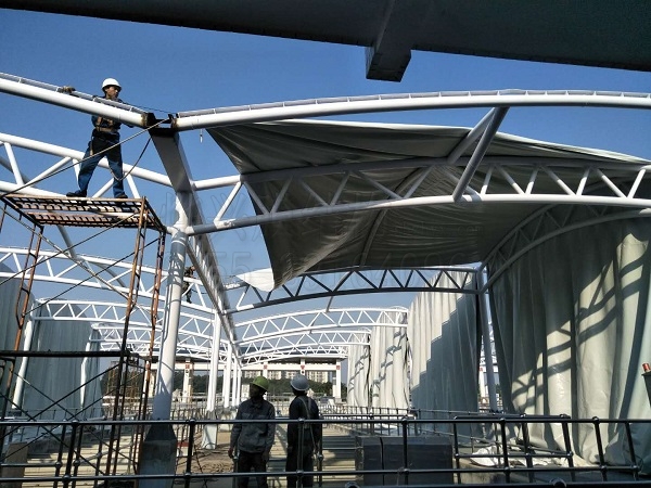 燁興龍華水廠膜結構進入全面裝膜階段
