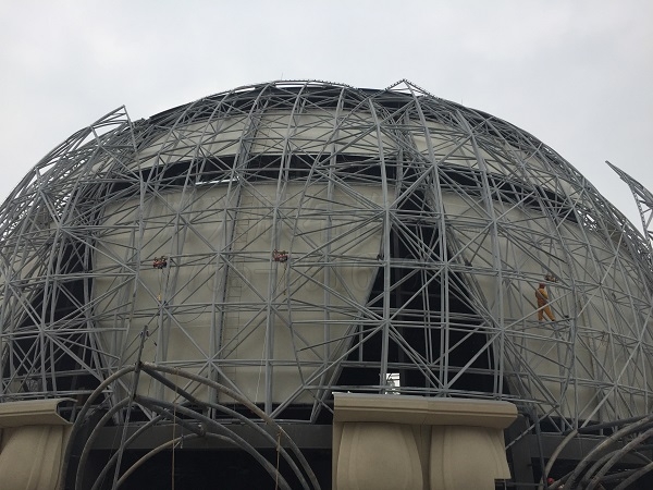 5) 膜成品地面組裝、空中展膜、移位,防止膜面局部折損難度大。