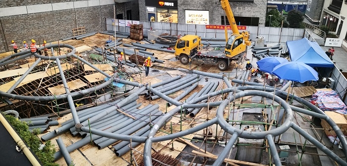 杭州湖濱銀泰廣場(chǎng)ETFE膜結(jié)構(gòu)雨棚建設(shè)近況